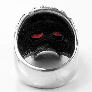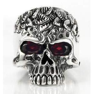 SAVAGE TRIBAL SKULL W/GRANAT AUGEN STERLING 925 SILBER RING NEU