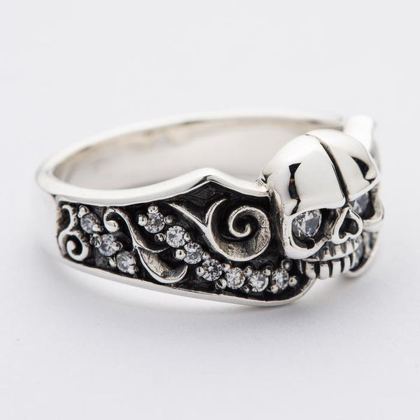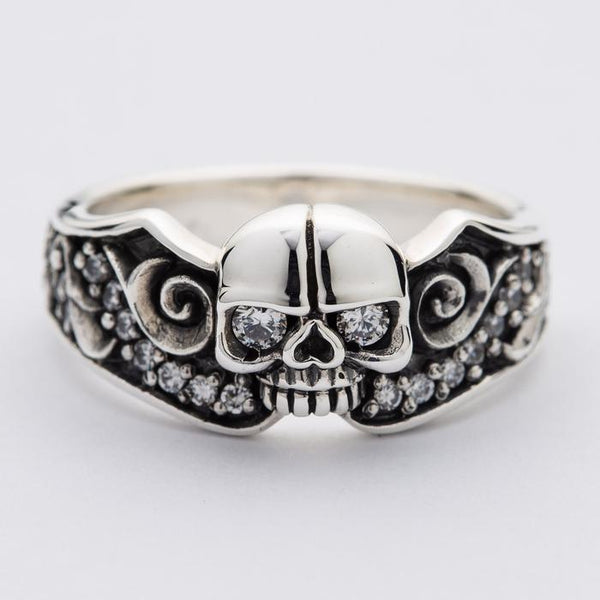 DIAMOND STERLING SILVER SKULL ENGAGEMENT RING ~BRAND NEW