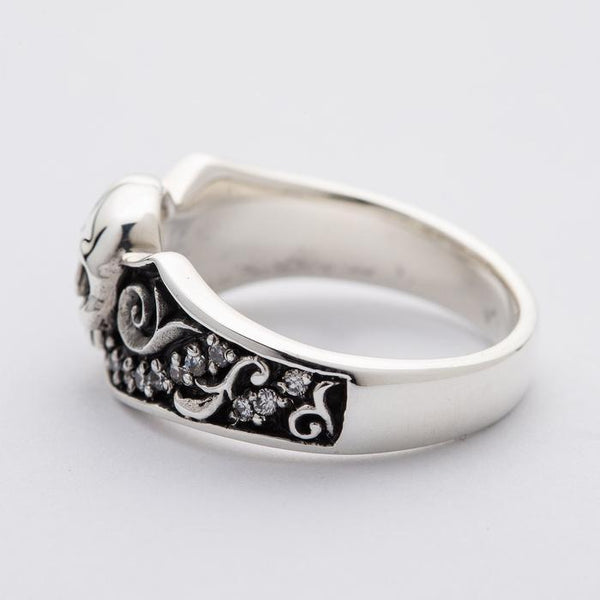Like all our rings, it is designed to hold up to years to wear and abuse, making to perfect for the rough road life of the most avid biker. This biker ring is a powerful piece that is visually stunning with intricate carvings and designing and a beautiful gemstone inlays.It is a beautiful ring that is both elegant and rugged, making it great for any biker. Make sure you order yours while it is still available!