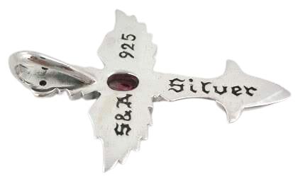 RED STONE CROSS ANGEL WINGS STERLING SILVER PENDANT ~NEW