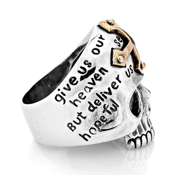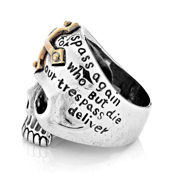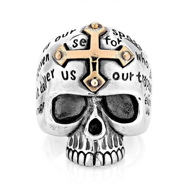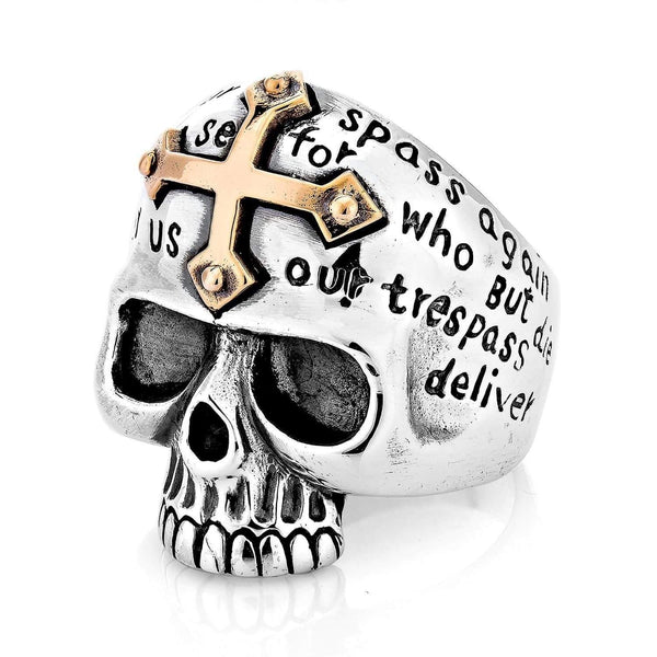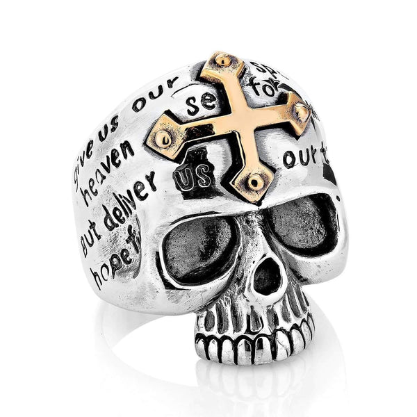 BAGUE POUR HOMMES EN OR 14K ROCKER SKULL ARGENT MASSIF NEUF