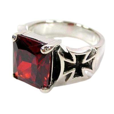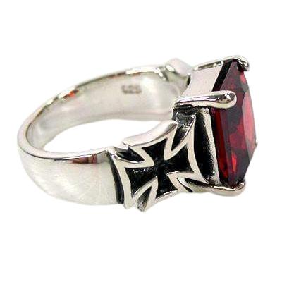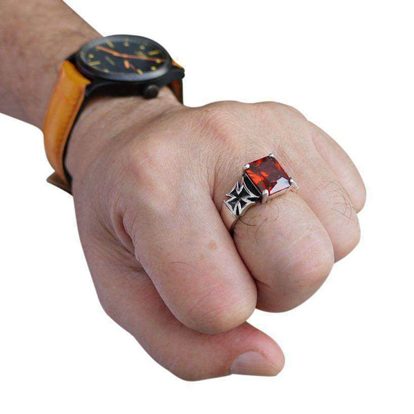 Bague pour homme en argent sterling 925 avec croix de fer rouge grenat ~ Nouveau
