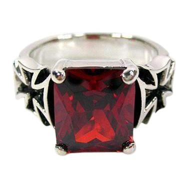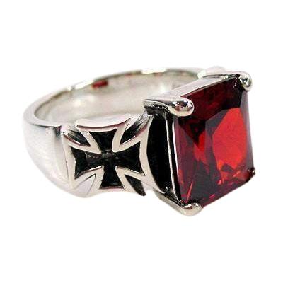 De chaque côté du grenat rouge, il y a des croix noires qui rendent la bague plus élégante mais tendance à la fois. Le grenat mesure 11 mm sur 13 mm et occupe pratiquement toute la face de l'anneau. La bague pèse 12g.