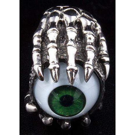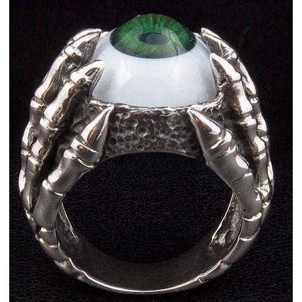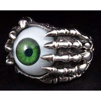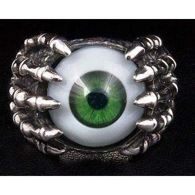 GREEN EYEBALL GRIFFE STERLING SILVER GOTHIC EVIL EYE RING ~ BRAND NEW