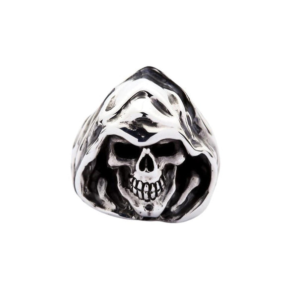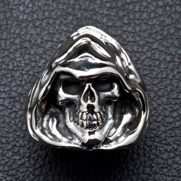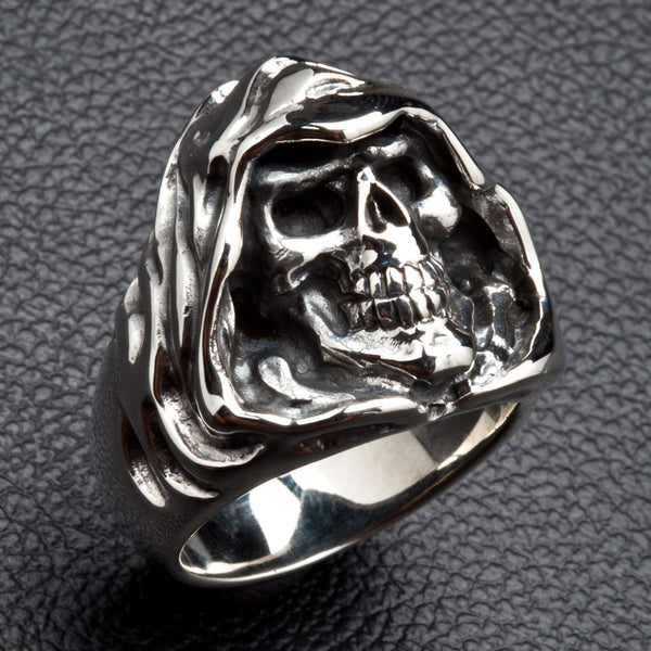 Anello in argento sterling con teschio di Grim Reaper Hood