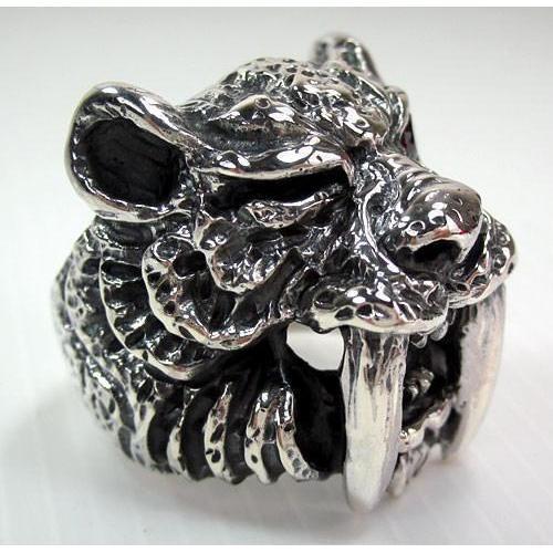 Poche cose sono dure e spaventose come una tigre dai denti a sciabola. E con questo solido anello in argento sterling, lo ottieni in un anello dal design straordinario. Sfrutta il potere e la ferocia della tigre dai denti a sciabola e aggiungilo alla tua collezione di accessori da motociclista con questo splendido anello. Se vuoi girare la testa e stupire i tuoi amici di punta, questo è un anello da non perdere!