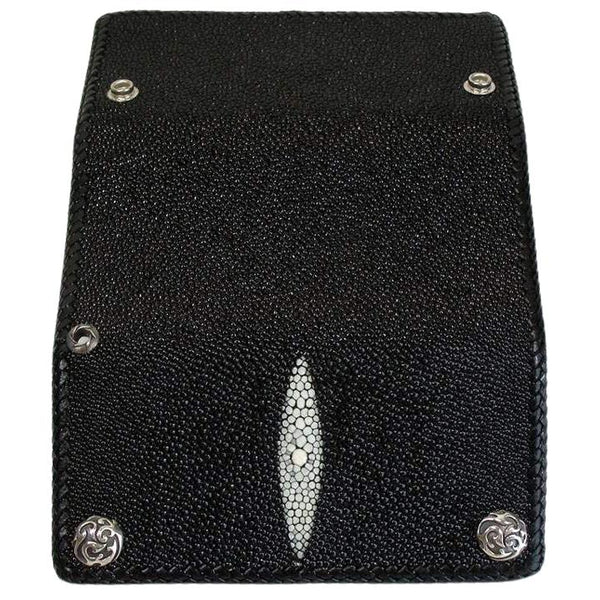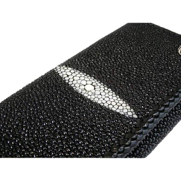PORTAFOGLIO TRIFOLD NERO IN VERA PELLE STINGRAY ~NUOVO