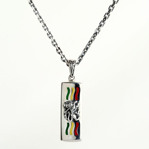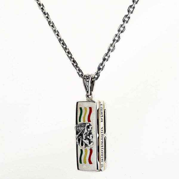 Questa collana con ciondolo armonica a forma di leone rasta in argento presenta il simbolo molto amato di Rastafari, il leone Rasta o il leone di Giuda. La sua immagine in rilievo è adornata con linee verdi, gialle e rosse, che i colori rappresentano tradizionalmente il continente africano. Questo pezzo è in realtà due ciondoli in uno: capovolgilo per vedere un nuovo design sul retro. Questi intricati motivi floreali aggiungeranno istantaneamente un elegante aggiornamento al tuo stile. Il ciondolo è realizzato in argento sterling di alta qualità e meticolosamente lucidato alla perfezione per trafiggere gli sguardi sul tuo petto. I suoi lati sono decorati con dettagli di colore diverso per gentile concessione di ottone di alta qualità. La scultura Rasta Vibrations è una modifica del nostro slogan proprietario Good Vibrations e 925 si riferisce all'argento sterling. Sarai felice di sapere che abbiamo realizzato questo prodotto a mano come si addice ai gioielli di design. Di conseguenza, puoi sfruttare la qualità superlativa e l'individualità in ogni linea.