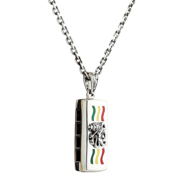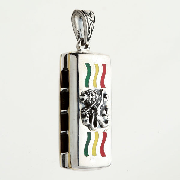 Collana con ciondolo armonica a forma di leone rasta in argento sterling