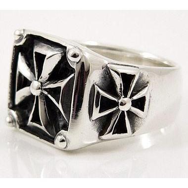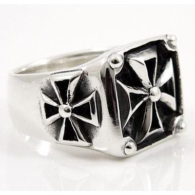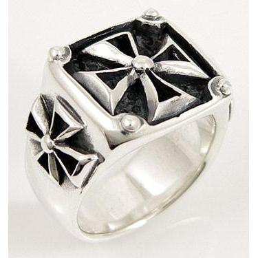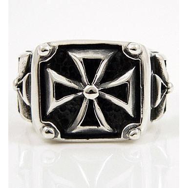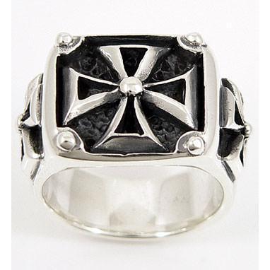 ANELLO BIKER CON CROCE DI MALTA IN ARGENTO ~NUOVO