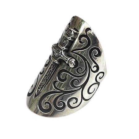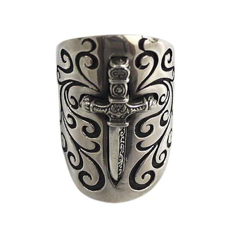 Anello spada scudo medievale in argento sterling