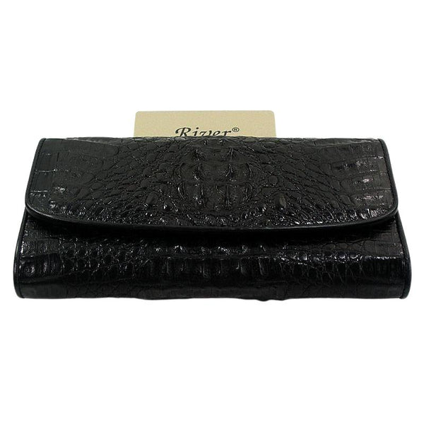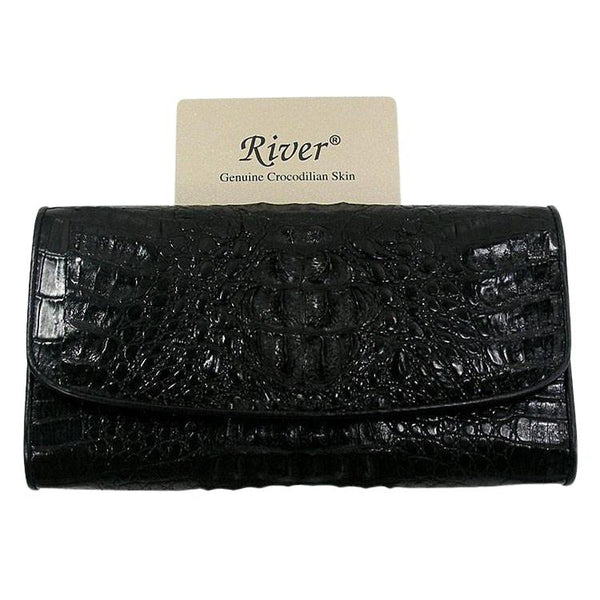 AUTHENTIC RIVER GENUINE CROCODILE HORNBACK SKIN TRI-FOLD LONG WALLET