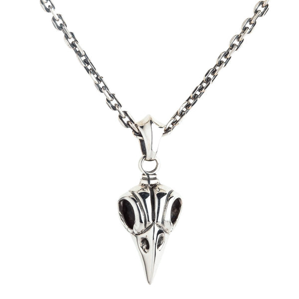 Small Crow Skull Pendant Sterling Silver Necklace New