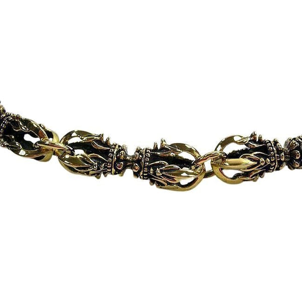 This is 100% solid brass, which is nicely polished for a long life and exquisite finish. The chain is made with crowns throughout, linked to one another, and the clasps are very thick and nicely designed too so as to finish off this beautifully made chain really nicely.