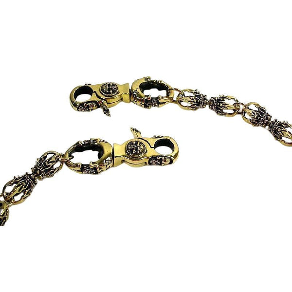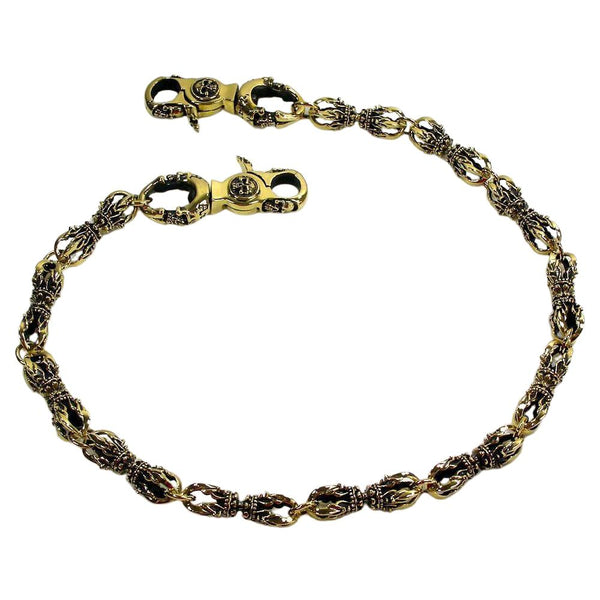 This solid brass wallet chain offers you quality, value for money and durability. With a chain link width of 11mm, and being 60cm long, you are getting an approximate weight of 160 grams.