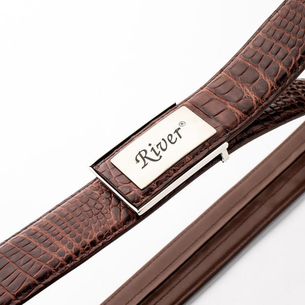 The dark brown crocodile leather is a timeless feature that captures the eye of every single onlooker. And the demure and subtle buckle has been integrated into the belt to reduce bulk and design.