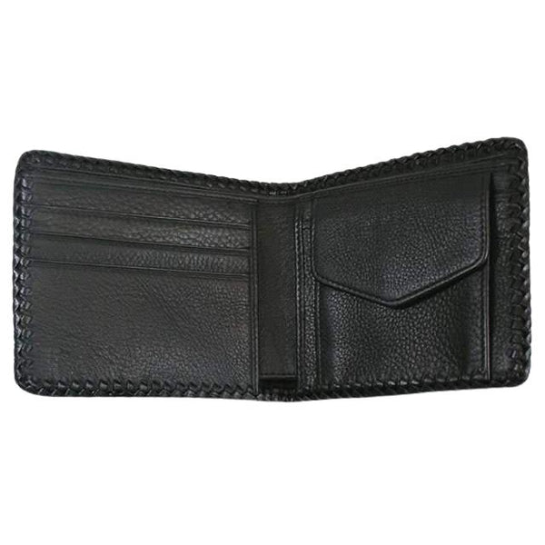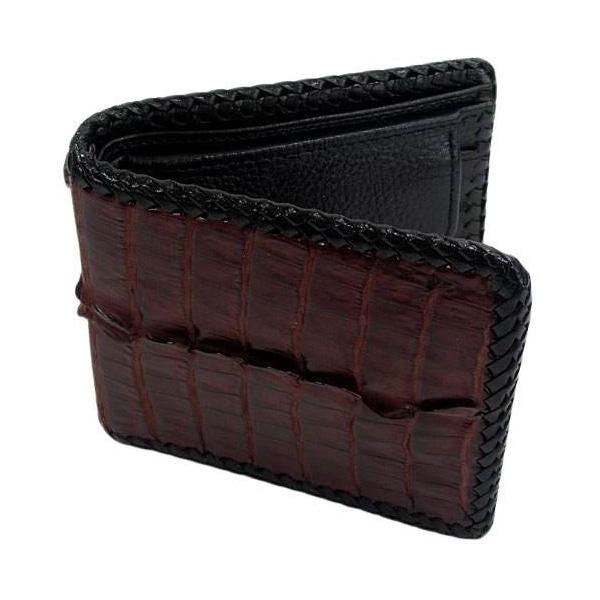 The wallet carrying crocodile leather proudly displays its signature raised scales. We have no doubt that you’ll love its unique texture combined with flexibility. Plus, crocodile leather is a very durable material resistant to wear and tear. Because the reptile scale pattern doesn’t repeat, you can get your hands on a truly unique accessory for your money.To take the wallet’s wearability up a notch, we added braided detailing along the edges. It adds a finishing touch and protects the stitching from wearing out. The wallet’s interior features five card slots, two bill compartments, and a coin pocket constructed from genuine cowhide in a black finish. If you’d like to secure this wallet with a wallet chain, we prudently incorporated a silver grommet on the side.