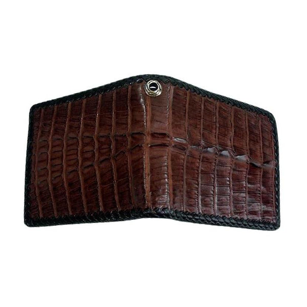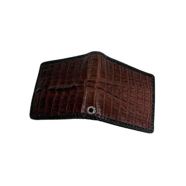 Dark Brown Crocodile Leather Bi-fold Biker Wallet