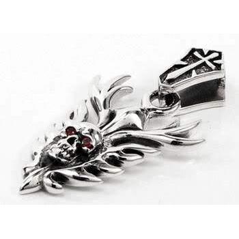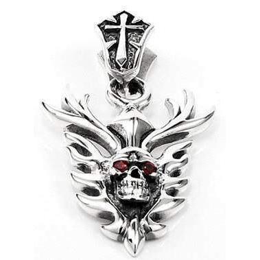 FLAME BLADE GARNET EYES SKULL STERLING SILVER BIKER PENDANT ~BRAND NEW
