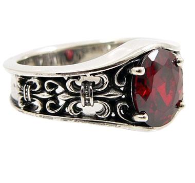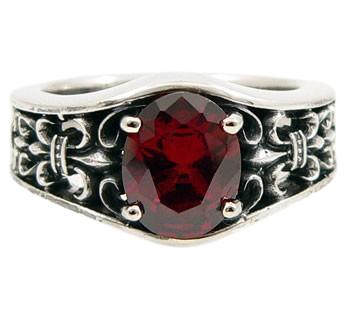 Garnet Gothic Fleur De Lis Sterling Silver Band Ring