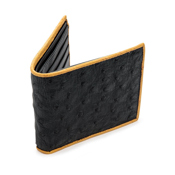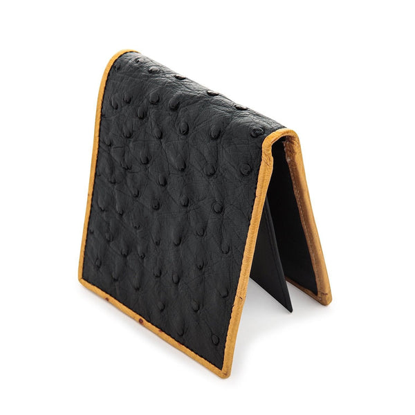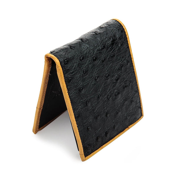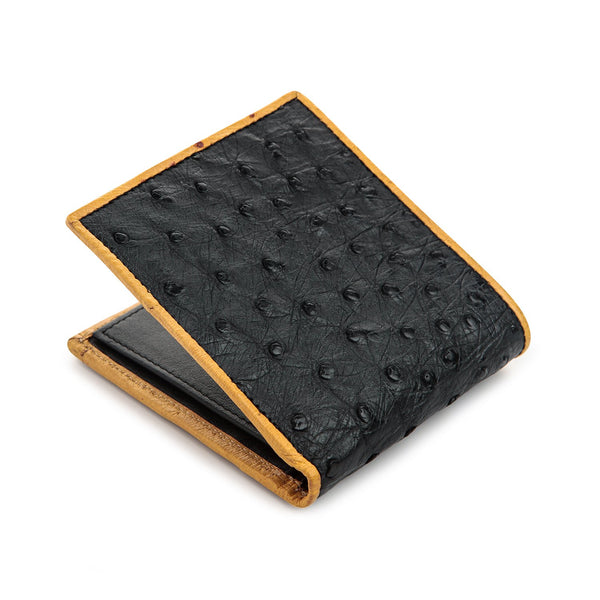 Exceptional quality of this level is hard to come by, but this wallet made from genuine ostrich skin leather is available for our esteemed clients who want high quality at great prices. This particular design is very popular since it comes in a black color but with an outer border, also made from ostrich skin, in a light brown color.
