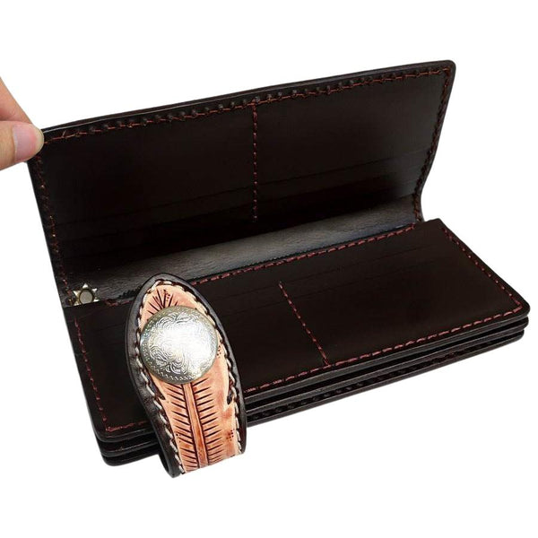 For security, a beautifully feathered popper holds the entire wallet together and keeps both cards and coins safe at all times. It also boasts a sterling silver grommet for attaching to your wallet chain.