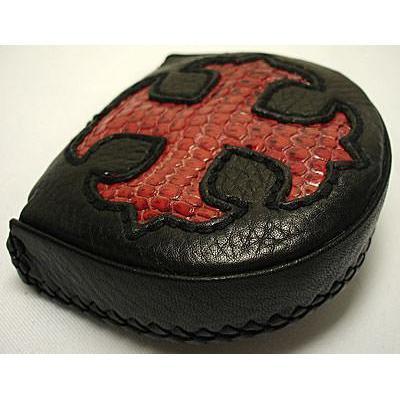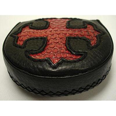 Keep change in one compact and stylish place with our genuine leather Red Coin Wallet. Stitched with care and skill, this masculine wallet takes inspiration from gothic design. The dark black background is offset with a rich, red cross picked out in genuine komodo skin.