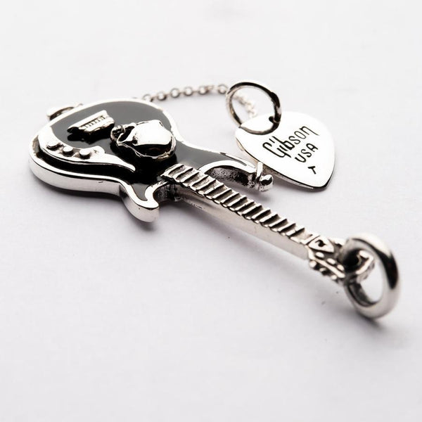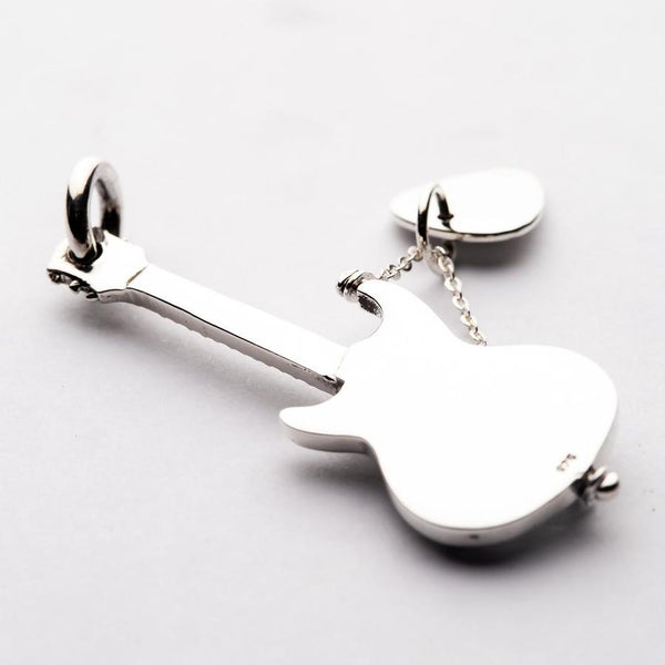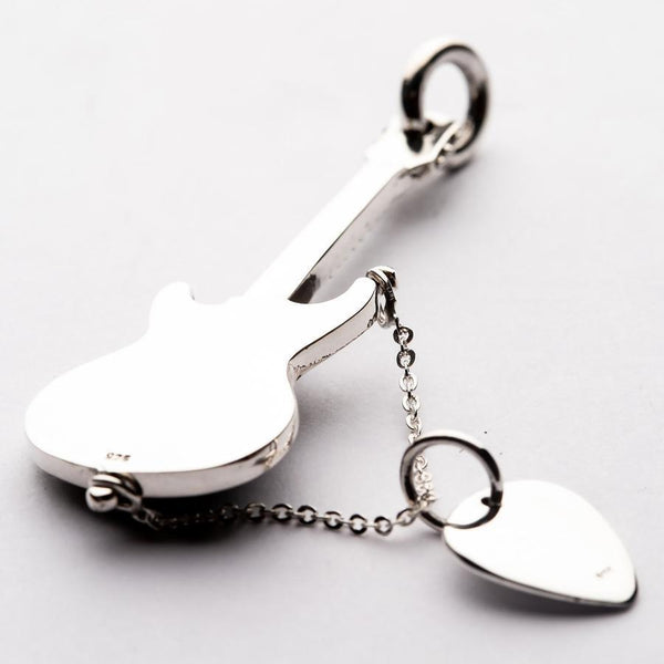 Guitar & pick sterling silver rock n roll pendant