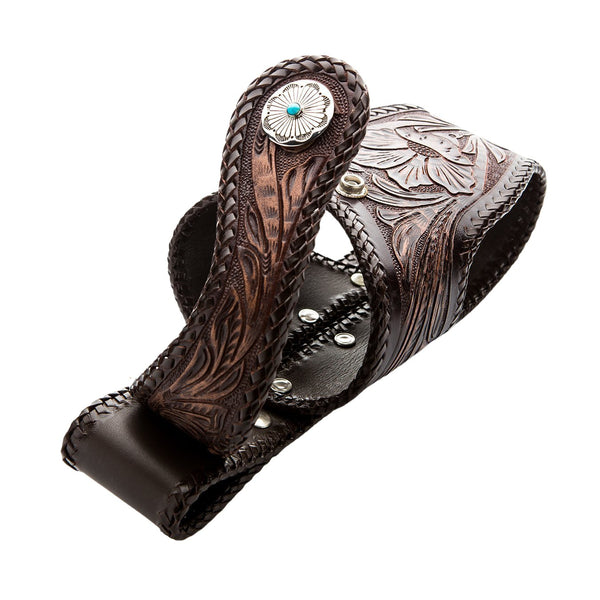Hand Tooled Dark Brown Leather Biker Wallet Holster
