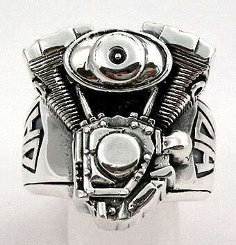 MOTORCYCLE ENGINE STERLING SILVER BIKER HARLEY RING JEWELRY ~NEW