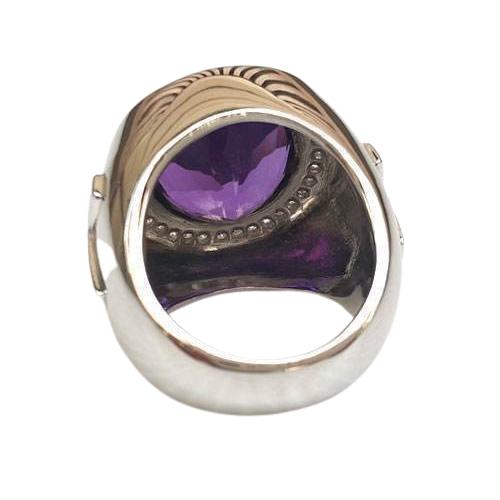 HUGE NATURAL AMETHYST & CLEAR STONES CHRISTIAN STERLING SILVER LARGE BISHOP RING