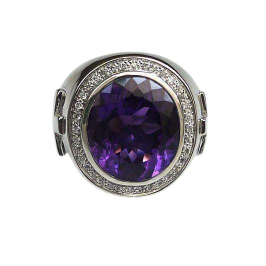 PURPLE AMETHYST, DIAMOND Stone Type : High Grade Natural Amethyst Stone. Stone Shape : Excellent Oval Cut / 21 CT (18 x 20 mm.) Stone Color : AAA RICH VIOLET/PURPLE. Diamond Type : High Grade Synthetic CZ Diamond Clear Stones. Diamond Shape : Round Cut/1.5mm diameter. |