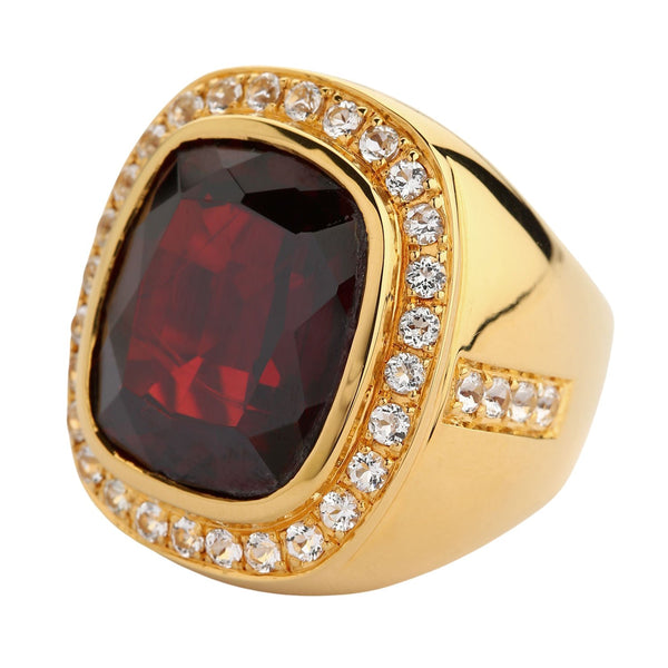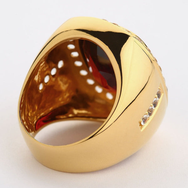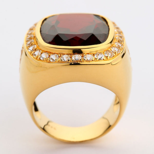 Looking for luxury at an affordable price? Our Huge Yellow Gold Men’s Garnet Ring is capable of providing everything you wish for. If your wishes include a formidable size, impressive weight, and a dazzling sheen on genuine gemstones, you can count on this bauble.