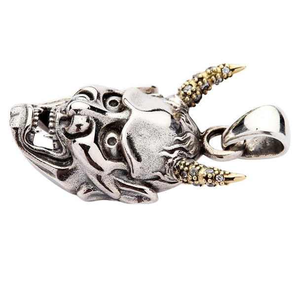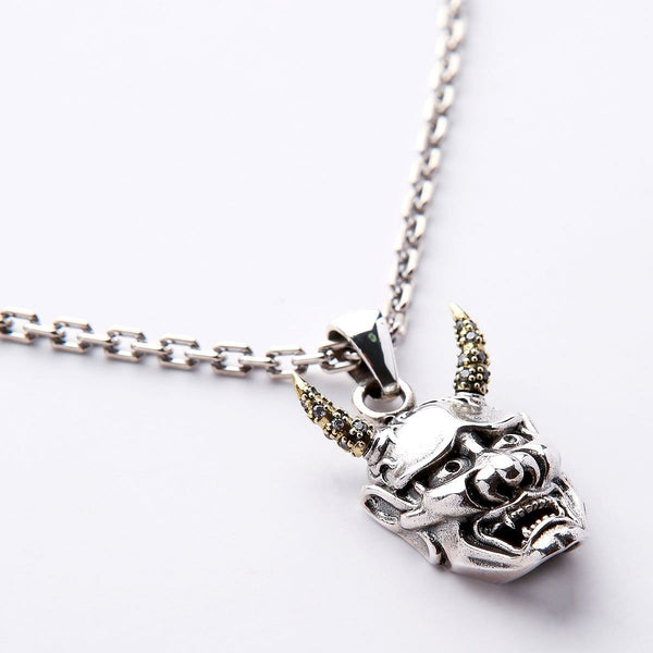 Sterling Silver Japanese Hannya Mask Devil Pendant Necklace