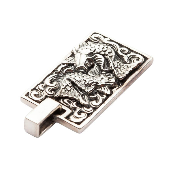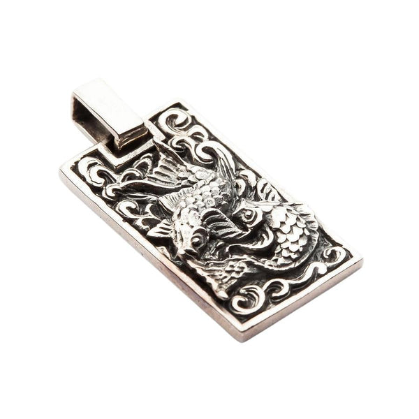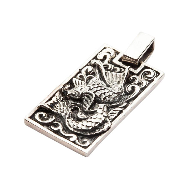 This solid sterling silver dog tag has two swimming Koi fish on the front. On the back is the traditional .925 trademark stamp, to reassure you of this pendants authenticity and high quality.