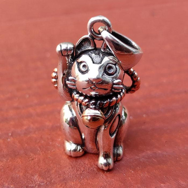 Sterling Silver Good Luck Japanese Maneki-Neko Cat Pendant ~New