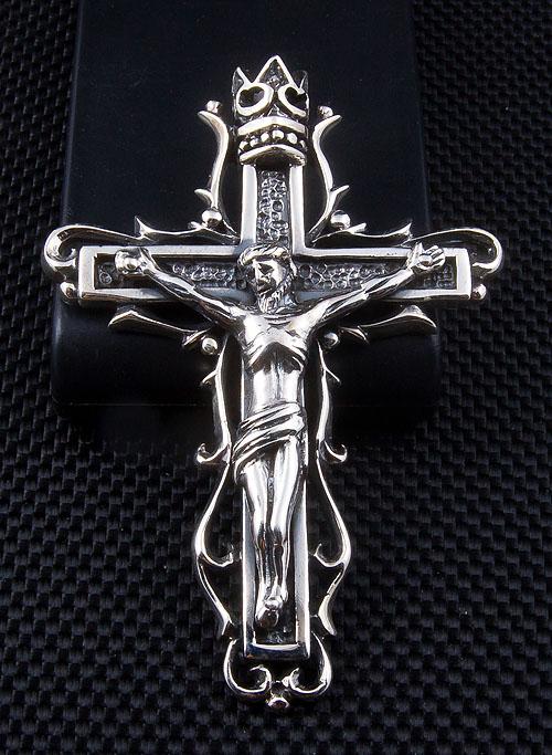 Christian crucifixes are normally deprived of ornamentation. This crucifix is different. The figure of Christ stands alongside plant patterns and a crown atop the cross. The floral pattern refers to blackthorn, which is metaphorically used to depict the devastating consequences of the Judgment Day when a beautiful and fruitful land turns into a desert. The crown, as an attribute of a martyr, means victory over sin and death. As you can see, the whole piece is bristling with Christian symbolism, which makes it a good choice for a believer. But if you’re only looking for an original and edgy accessory, it will fit the bill as well.We intentionally made this pendant larger-than-life and heavy to please Gothic and biker enthusiasts as well as bold fashionistas. Like any other item in Bikerringshop inventory, it shows off lots of character and individuality. No wonder, we made this pendant by hand to preserve the touch of individuality in it.