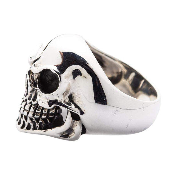 Do you like skulls? Are you looking for a new biker ring for your collection? If so then this a great piece to consider. The heavy sterling silver design is durable and resists the wear and tear of the road easily. The laughing skull design is a great piece that is a perfect addition to any biker accessory collection. It is a comfortable yet masculine ring, one that you will not be disappointed with. Order yours today while you still can!