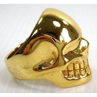 The polished skull head sits complete with clenched jaw and deep eye-sockets that glare out at every passer-by. It is only the rich 14k gold-plated finish that stops you in your tracks and distinguishes this piece out from other similar rings.