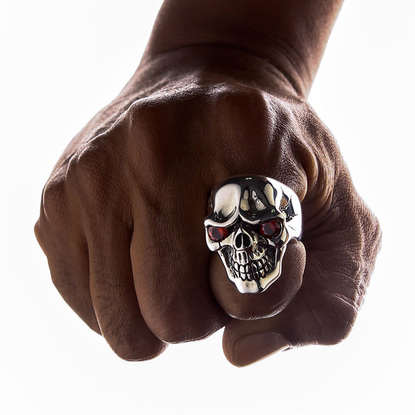 RED EYES STERLING SILVER HANDSOME SKULL RINGS ~NEW