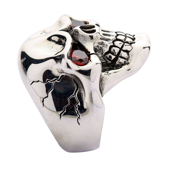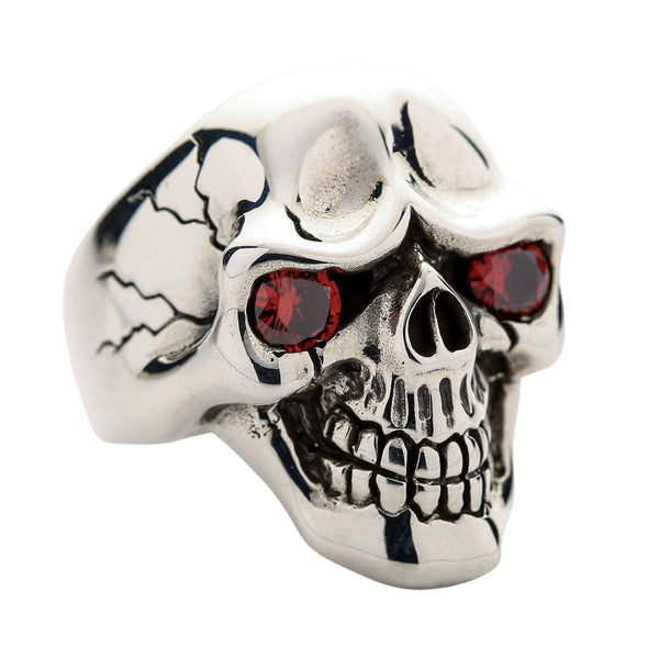 - With Fire Garnet Red CZ stone inlaid skull's eyes.