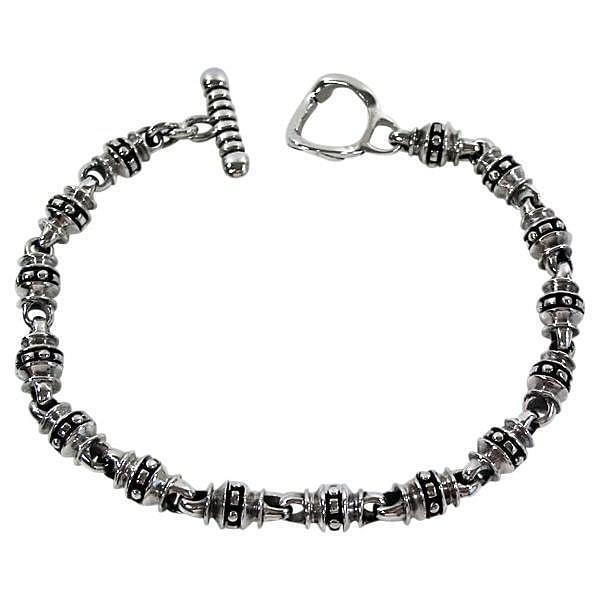 Our Roller Silver Bracelet is truly unique with a blend of darkened engravings and polished surfaces. It has an exquisite design, boasting textured roller balls interlinked together. Entirely flexible, it lays against the wrist comfortably and moulds to sit comfortably all day long.
