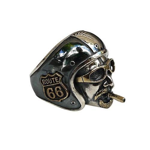 May your rocker style forever roll on with this Route 66 Biker Ring.Our Route 66 biker ring features a tough, biker helmet engraved with the iconic Route 66 sign and a star on the alternate side, worn by a biker, complete with his own biker goggles and a dapper cigar on the go. Astonishingly detailed, the ring encapsulates the life of this Route 66 biker perfectly. With accessories like this, you’ll be fast on the road to securing your signature biker style.