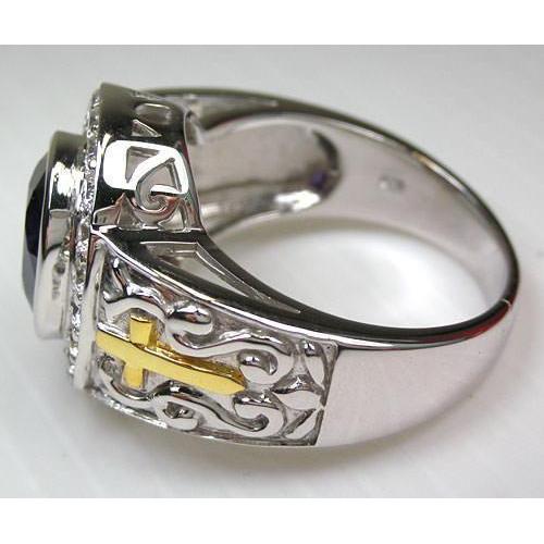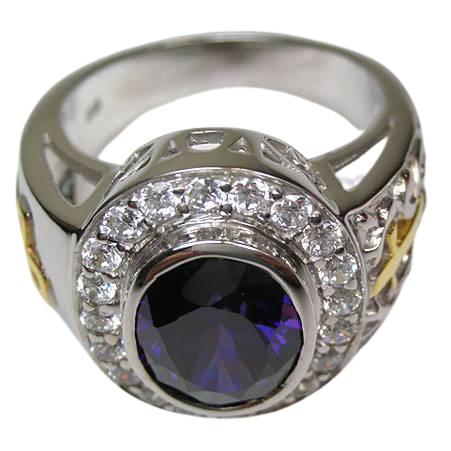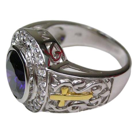 AMETHYST & CLEAR STONES 925 STERLING SILVER CHRISTIAN BISHOP RING