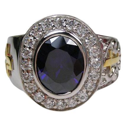 This stunning 100% solid sterling silver ring has been designed with religion in mind, as an exquisite crucifix is on each side of the band. The ring’s face has been decorated with fire amethyst, violet and clear stones, to give make the ring into a bold statement piece.The solid sterling silver is covered with 14k white gold, making it a truly remarkable piece to give as a gift to a friend, or to yourself. The finishing is the huge purple amethyst on the top of the ring.