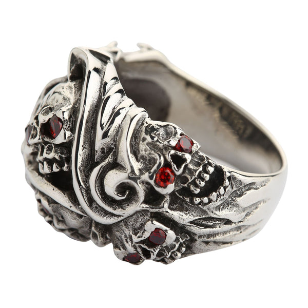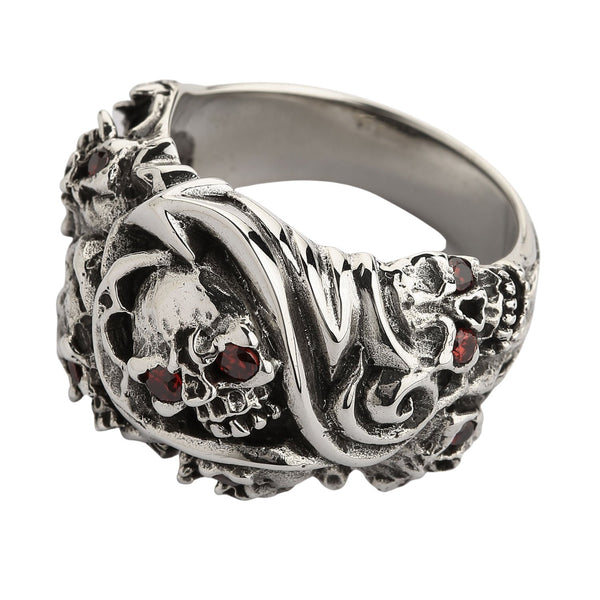 Silver Red Eyes Inferno Skull Rings