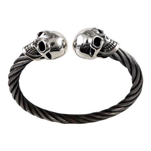 Cuff bracelets are very popular and we have made it a point to offer you a nice range to choose from. This handmade sterling silver cuff bracelet is very nicely designed, with a woven pattern all along and finishing up with a skull on each end.