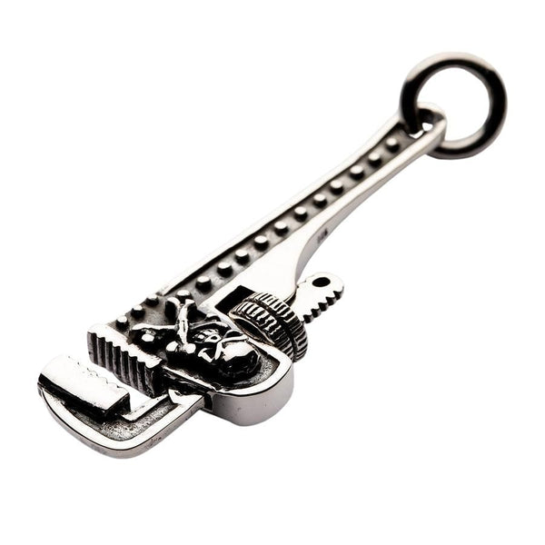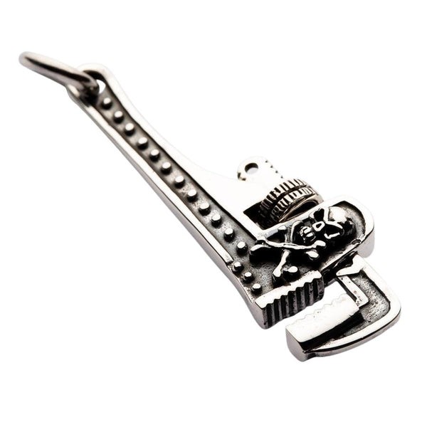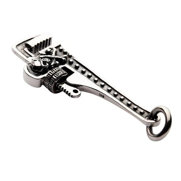 A unique addition to any collection, our Silver Skull Wrench Pendant is an accessory of true charm. Designed and crafted for the modern man, it uses solid sterling silver in its design. Not only does this give a shimmering finish but also a durability that stands the test of time throughout the years.We take inspiration from the humble wrench - a feature in many man's every day and home life. Integrated into the style, gothic stylings come from the ominous skull head and crossbones, hand engraved into the body and darkened to accentuate the detail. The pendant can sit on any chain, long or short, and has a versatility that lends itself to many an event. Wear with tailored suits or pair with your favourite jumpers for a look and style that is entirely your own.