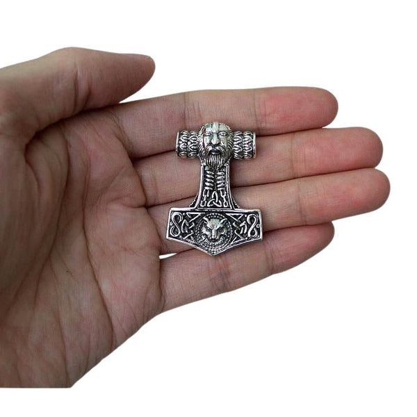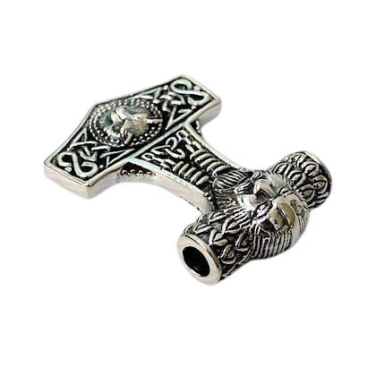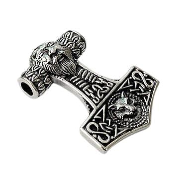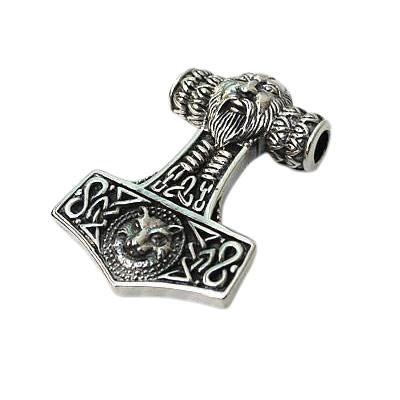 Silver Viking Fenrir Wolf Mjolnir Thors Hammer Pendant