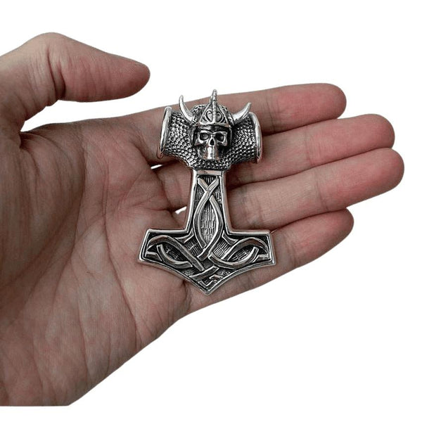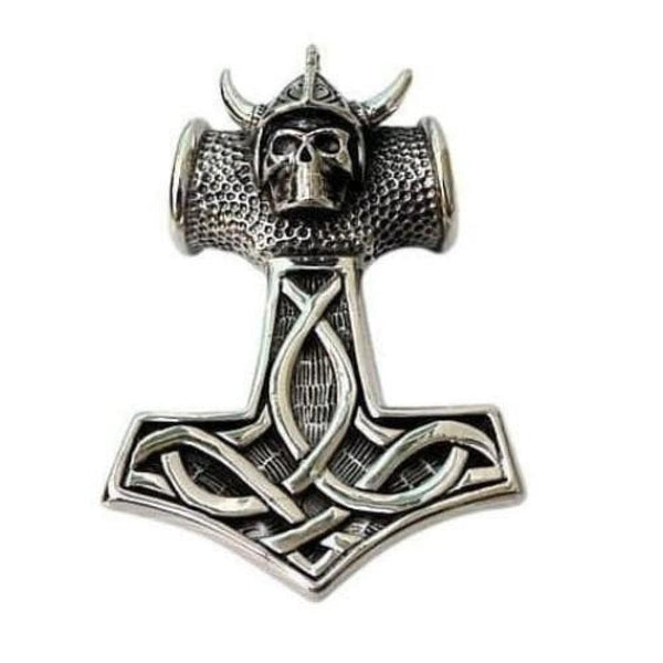 The hammer design was, of course, based upon the Norse God’s hammer. Thor was known in some tales as a demi-god, others he has been depicted as a Viking. This solid sterling silver hammer combines both of this elements.The detailing and the shape will remind you of Norse mythology, whilst the skull and commonly misinterpreted Viking helmet to represent the fierce Vikings.